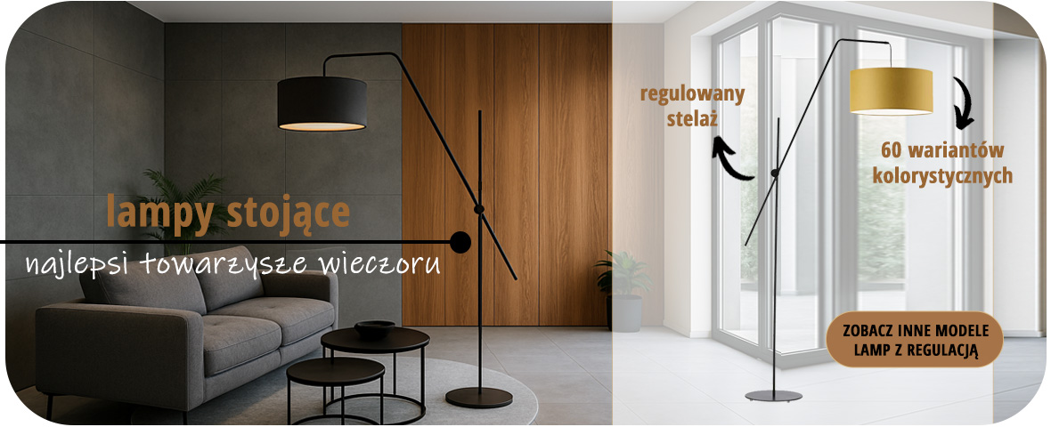 Lampy podłogowe oprócz praktycznych funkcji są także niezwykle atrakcyjnym elementem dekoracyjnym. W lampach stojących cenimy przede wszystkich ich mobilny charakter – w każdej chwili mogą zmienić miejsce swojego przeznaczenia. Lampy stojące z abażurem nie tylko uzupełnią wnętrze o dodatkowe światło ale także zbudują przyjemną atmosferę relaksu. Oferowane przez nasz sklep internetowy lampy podłogowe to dość obszerna kategoria. Oferujemy dość popularne lampy stojące metalowe, drewniane lampy stojące, trójnogi inaczej zwane tripodami. Oświetlenie podłogowe dostępne jest u nas w wielu wariantach kolorystycznych, formach i wzorach, dzięki czemu lampy stojące są na tyle uniwersalnym produktem, że możesz dostosować je do wnętrz w wielu koncepcjach aranżacyjnych. Lampy stojące do salonu to najczęściej wybierane oświetlenie do domu. Są one nie tylko dekoracyjnym elementem wystroju salonu ale także pełnią wiele praktycznych funkcji. Mogą wcielać się w rolę lamp podłogowych do czytania. Lampy stojące z regulacją bez problemu doświetlą kącik czytelniczy podczas wieczornej lektury. Lampa podłogowa z wysięgnikiem czy lampa stojąca z regulowanym ramieniem to najpopularniejsi przedstawiciele oświetlenia do salonu. Często lampy podłogowe wybierane są także do sypialni. Pełnią one tam głównie rolę estetyczną. Lampy stojące do sypialni są niebywałą dekoracją, a lampy z welurowym abażurem nadadzą wnętrzu nuty delikatności. Popularnymi modelami są także lampy stojące na 3 nogach. Nowoczesne lampy podłogowe trójnogi to doskonała alternatywa dla klasycznych lamp stojących. Świetnie wpiszą się we wnętrza industrialne. Lampy stojące LOFT to cenione oświetlenie podłogowe, najczęściej występujące w formie czarnych lamp podłogowych.