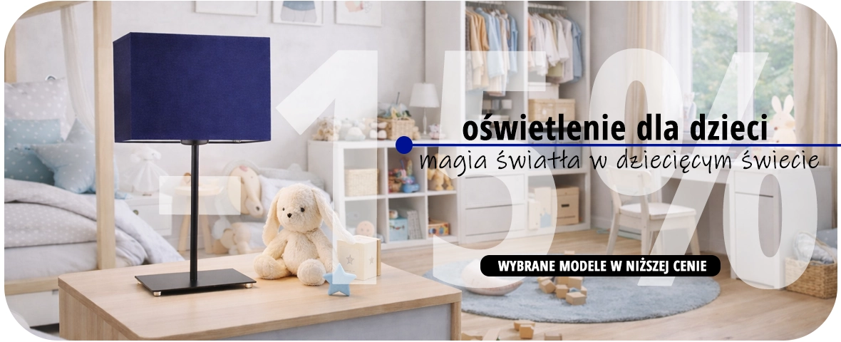 Oświetlenie dla dzieci to kategoria w naszym sklepie online, która obejmuje żyrandole dziecięce, lampki nocne dla dzieci, designerskie lampy podłogowe oraz kinkiety dla dzieci. Lampy dla dzieci to specjalny rodzaj światła, które oprócz walorów estetyczny jest przyjazne i bezpieczne dla dzieci. Żyrandole dla dziewczynek utrzymane są w jasnej i delikatnej kolorystyce. Często występują w formie lamp wiszących dla dzieci ze wzorem gwiazdek, chmur lub zwierzątek. Żyrandole do pokoju chłopców cechują się fantazyjnymi kształtami i wykorzystaniem motywów samochodów, piłki nożnej czy wszechświata. Żyrandole dziecięce to wdzięczna kategoria oświetlenia w nowoczesnym designie, które będzie rosło z naszą pociechą. Dodatkowym źródłem światła są lampki nocne dziecięce, któe urzekają przyjaznym i kolorowym kloszem. Lampki dla dzieci nocne posiadają klasyczną formę lub mogą być oparte na trójnożnej podstawie wykonanej z drewna lub metalu. Umieszczone obok łóżka na szafce nocnej, na komodzie lub podłodze idealnie wpisują się w styl skandynawski, glamour, klasyczny i nowoczesny. Lampy podłogowe do pokoju dziecięcego wyróżniają się prostym designem i pełnią funkcję dekoracyjną zapewniając odpowiednie światło. Kolorowe lampy stojące są przyjazne dla dzieci – posiadają stabilną podstawę i fantazyjne abażury. Drewniane lampy podłogowe we wzory przykuwają uwagę i są eleganckim elementem wystroju pokoju dziecięcego. Najczęściej występują w formie popularnych walcowatych abażurów w kolorach bieli, różu, mięty czy błękitu. Tak dobrana delikatna, cukierkowa kolorystyka pasuje do większości pokoi dziecięcych. Dostępne są u nas także lampy stojące zygzak lub lampy podłogowe w grochy, które prezentują się niezwykle zgrabnie nawet w niewielkim pokoju. Innymi modelami lamp dla dzieci, które dają wiele możliwości aranżacyjnych są kinkiety dziecięce. Dają one bowiem delikatne światło, które możemy umieścić w praktycznie każdej części pokoju. Lampy naścienne są doskonałą propozycją dla dzieci, które boją się ciemności. W takiej sytuacji możemy zostawić oprawę włączoną na całą noc o ile mamy do czynienia z energooszczędnymi kinkietami ledowymi. Nasz sklep internetowy z lampkami dla dzieci oferuje różnorodne modele oświetlenia zarówno do pokoju małej księżniczki jak i małego księcia. Nic więc nie stoi na przeszkodzie, by zaaranżować pokój Twoich pociech tak, by poczuli się jak w pałacu.
