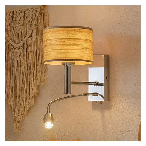 Panel LED został umieszczony na giętkim, elastycznym ramieniu, co pozwala na swobodne kierowanie strumieniem światła w wybrane miejsce. To idealne rozwiązanie jeśli szukasz kinkietu ściennego do czytania nad łóżkiem albo lampy ściennej do pracy i relaksu. Główne światło oprawy rozchodzi się w górę i dół delikatnie przenikając przez fornirowy abażur i tworząc przyjemny klimat we wnętrzu. Dodatkowym atutem są dwa niezależne włączniki dźwigniowe, które pozwalają sterować źródłami światła oddzielnie – to ogromna wygoda i przykład, że 2-punktowy kinkiet ścienny FLORYDA ECO został zaprojektowany z myślą o komforcie użytkowników.