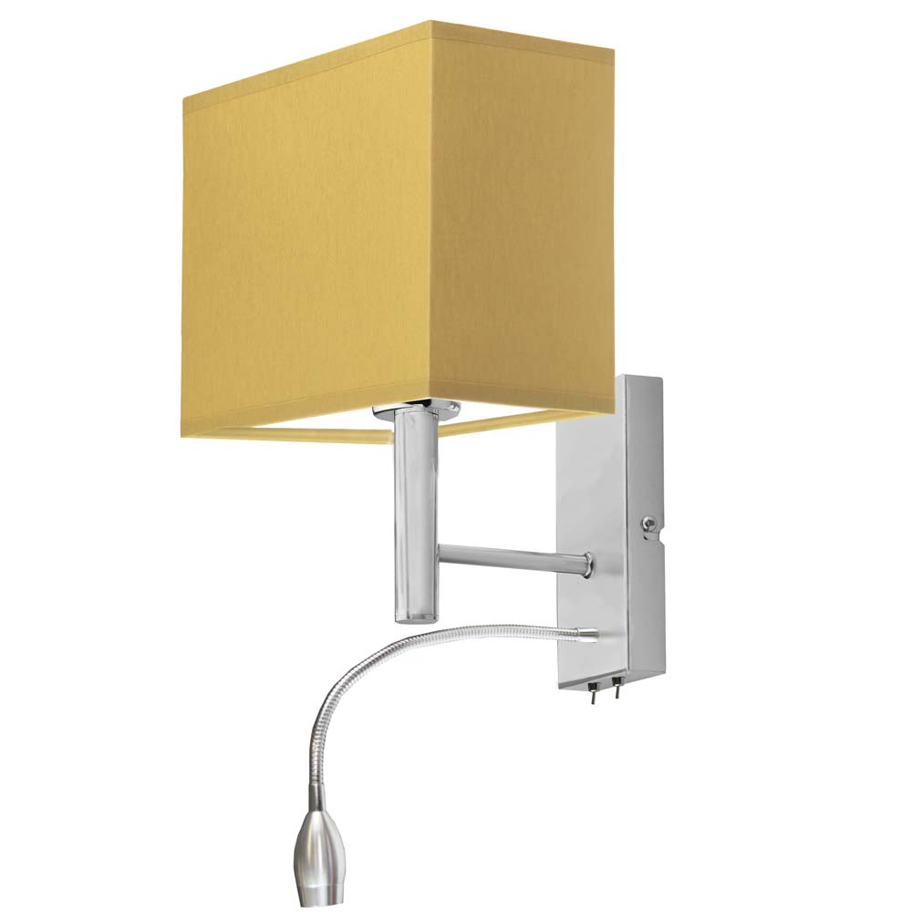 Podwójny kinkiet ścienny LED ZIBO GOLD zapewnia ciepłe i przyjemne światło. Kinkiet poza standardowym źródłem światła wyposażono także w ruchomy panel LED. Takie dodatkowe uzupełnienie tworzy z niego niezmiernie funkcjonalny produkt. To model stworzony z myślą o osobach, które cenią sobie zarówno piękno jak i funkcjonalność. Wyposażony w dwa źródła światła, ZIBO GOLD idealnie spełnia rolę zarówno głównego jak i punktowego oświetlenia. Podstawowe światło pochodzi z prostokątnego abażura ze złotym wnętrzem nadającym światłu ciepły i luksusowy charakter. Abażur dostępny jest w pięciu kolorach, co pozwala na idealne dopasowanie kinkietu do każdej aranżacji wnętrza. Dodatkowym źródłem światła jest ruchomy panel LED umożliwiający precyzyjne skierowanie strumienia świetlnego w wybrane miejsce, co czyni go idealnym rozwiązaniem do pracy lub wieczornego czytania.