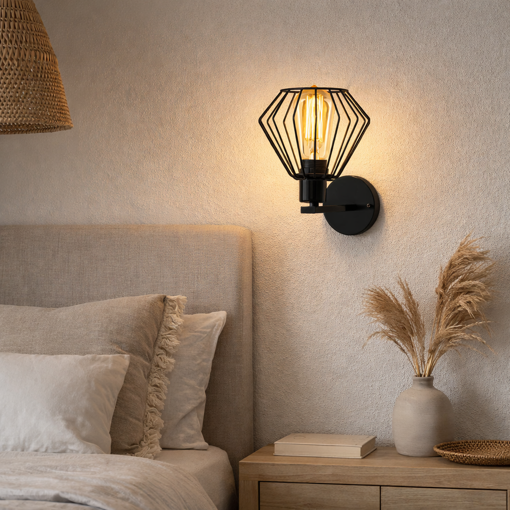Czarny kinkiet loftowy DUBLIN LOFT został w pełni wyprodukowany w naszym rodzimym kraju. Producent oświetlenia LYSNE.PL zadbał o każdy, nawet najmniejszy detal. Druciany klosz wysoki na 13 cm oraz szeroki na 16,5 cm został połączony z metalowym stelażem tworząc kinkiet o wysokości 23 cm i szerokości 22,5 cm. W zależności od preferencji, industrialny kinkiet ścienny DUBLIN LOFT dostępny jest w wielu konfiguracjach kolorystycznych. Istnieje możliwość modyfikacji kolorystycznej zarówno klosza (biały, czarny), jak i stelaża (biały, czarny). Poszczególne zestawienia będą świetnym rozwiązaniem dla nowoczesnych i niestandardowych wnętrz. Ten model metalowego kinkietu ściennego LED dostosowany jest do źródeł światła o klasach energetycznych od A do G. Posiada miejsce na 1 źródło światła o mocy tradycyjnej żarówki 60W lub żarówki ledowej montowanej na tzw. duży gwint E27. Przy zastosowaniu ozdobnej żarówki Edisona (brak w zestawie) kinkiet stanie się nie tylko dodatkowym źródłem światła ale także eleganckim elementem ozdobnym każdego salonu, sypialni czy pokoju młodzieżowego. Industrialny kinkiet ścienny idealnie sprawdzi się także w roli kinkietu hotelowego zapewniając gościom relaks po dniu pełnym wrażeń.