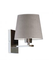 Jeśli udało nam się już wybrać centralne oświetlenie przyszedł czas na to dodatkowe, strefowe! Kinkiety z weluru obok lamp stojących i lampek nocnych to dodatkowa forma światła bez której ciężko wyobrazić sobie spójną aranżację. Kinkiety welurowe to niebywale eleganckie i efektowne źródło oświetlenia. Lampa ścienna z kloszem welurowym będzie idealnym rozwiązaniem, kiedy dysponujemy ograniczoną ilością m2 i nie mamy już miejsca na lampę stojącą czy też szafkę, na której moglibyśmy umieścić podręczną lampkę. Kinkiety materiałowe zawieszone na ścianie wyglądają niezwykle lekko, a welurowe abażury przyciągają wzrok i nie tylko oświetlają, ale i zdobią przestrzeń. Lampka ścienna z przełącznikiem to świetna opcja na oświetlenie strefowe w salonie.