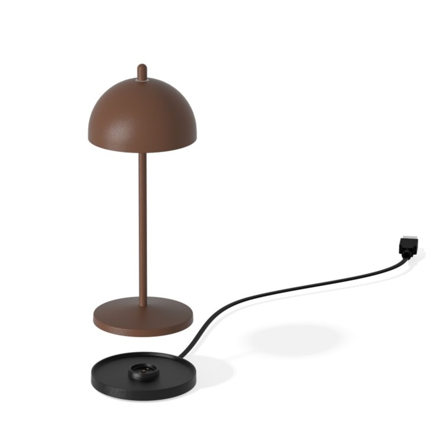 FIORE MICRO bezprzewodowa akumulatorowa lampa stołowa LED to idealne połączenie elegancji i funkcjonalności w kompaktowej formie. Jej wyjątkowa, kopulasta konstrukcja o wysokości 20 cm nadaje przestrzeni subtelnego uroku, a szeroka gama wykończeń – od klasycznego czarnego matu,przez szaro-zielony mat, aż po corten o efekcie rdzykosmiczny szary chrom i brąz szczotkowany – sprawia, że doskonale wpasuje się w każde wnętrze. To stylowa lampa stołowa HoReCa stworzona specjalnie z myślą o restauracjach, kawiarniach i hotelach.