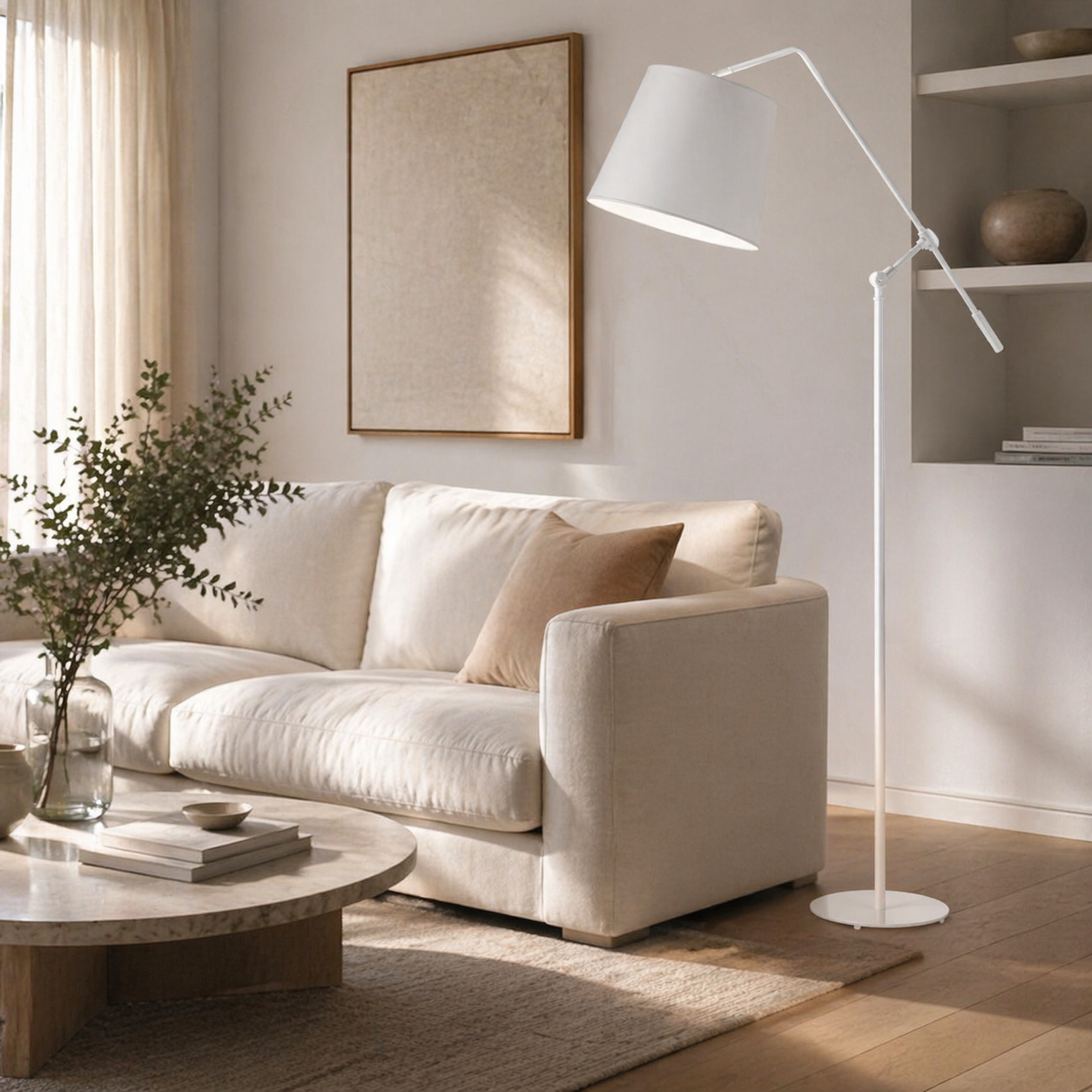 Nowoczesna lampa stojąca z regulowanym ramieniem FOYA to niezwykle uniwersalne rozwiązanie, które dopasowuje się do różnych przestrzeni i stylów aranżacyjnych. Jako lampa podłogowa regulowana doskonale odnajduje się w salonie, gdzie pełni funkcję dodatkowego światła do relaksu, oglądania telewizji czy wieczornego odpoczynku przy książce. Dzięki możliwości regulacji wysokości i kąta padania światła FOYA sprawdza się także jako lampa stojąca do czytania przy łóżku w sypialni, zapewniając komfortowe i dobrze ukierunkowane oświetlenie bez potrzeby montowania lamp ściennych.