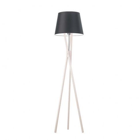 Biała lampa podłogowa na drewnianej podstawie ANDORA