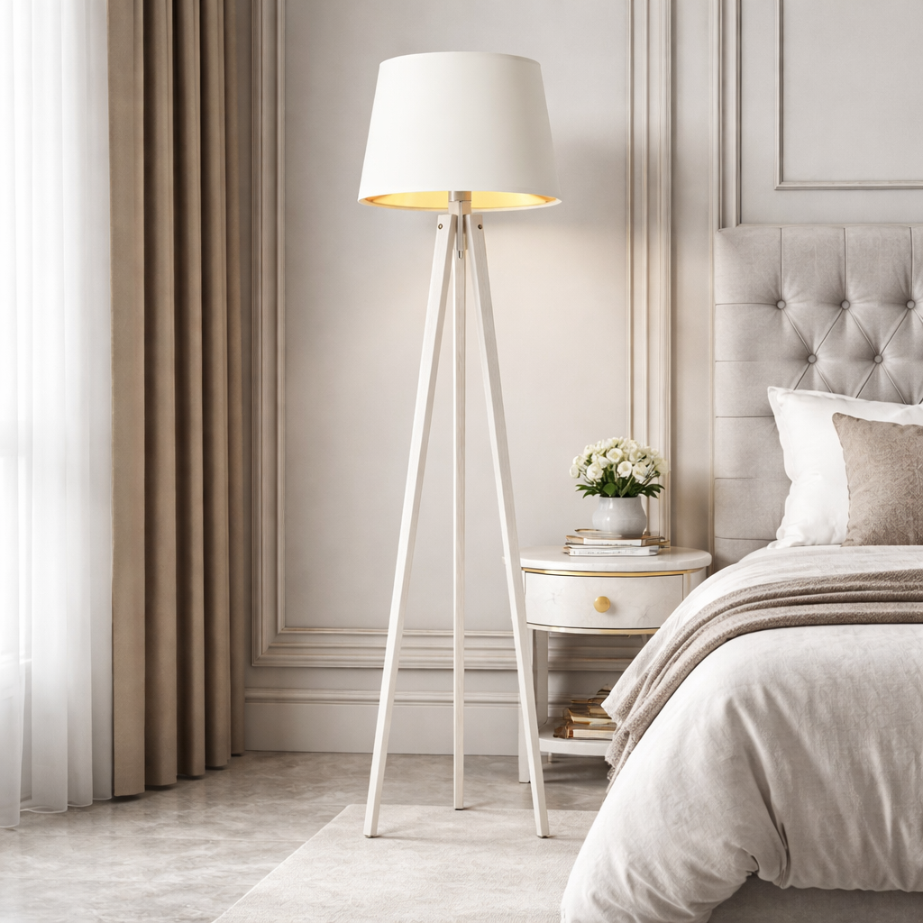Białą lampę podłogową z abażurem możemy ulokować w wielu pomieszczeniach, dodając subtelny akcent ale i jednocześnie funkcjonalne oświetlenie każdemu wnętrzu. W sypialni może pełnić rolę lampy stojącej do czytania w łóżku lub relaksującego oświetlenia z ciepłą złotą poswiatą. W salonie może być umieszczona obok fotela czy sofy jako dodatkowe oświetlenie lub możemy użyć jej do stworzenia nastrojowej atmosfery pochmurnego wieczoru. W biurze lub gabinecie może wspomagać koncentrację i wydajność podczas pracy, oświetlając biurko lub przestrzeń do pracy czy nauki. Drewniana lampa stojąca w dziecięcym pokoju może służyć jako delikatne oświetlenie nocne, które zapewnia poczucie bezpieczeństwa. W przestrzeniach komercyjnych, takich jak recepcje, poczekalnie lub kawiarnie, lampa stojąca z białym abażurem ze złotym może być eleganckim elementem dekoracyjnym, który podkreśli przytulność miejsca ale także i podkreśli jego wytworny charakter.