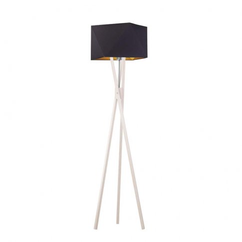 Biała lampa stojąca na 3 nogach z drewna ELX