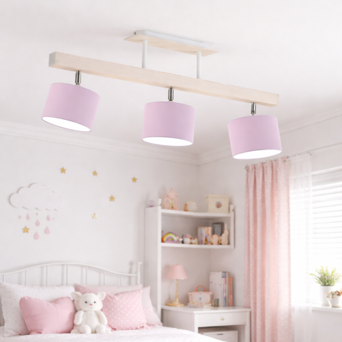 Drewniana lampa sufitowa do pokoju dziecięcego - 3 źródła światła i regulowany kąt padania światła