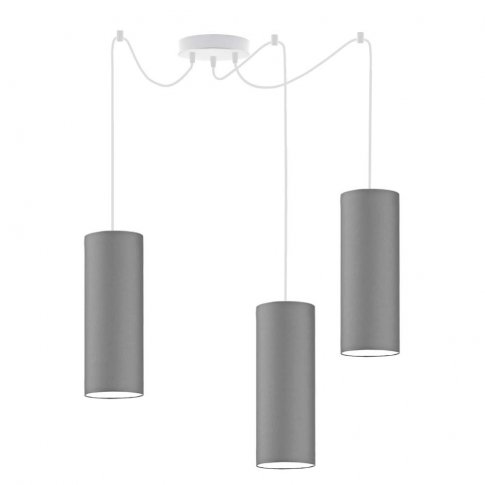 Lampy wiszące to znakomite rozwiązanie dla miłośników nowatorskich jak i awangardowych form oświetlenia. Niezaprzeczalnie są główną ozdobą salonu czy sypialni. VIZELA T3 składa się z okrągłej podsufitki w kolorze srebrnym z której wychodzą przewody zasilające, a na ich końcach umiejscowione są tkaninowe klosze tuby osłaniające żarówkę. Abażury o średnicy 15 cm i wysokości 35 cm wykonane są z holenderskiej tkaniny tekstylnej podklejonej na usztywnionym laminacie PVC. Pięknie rozpraszają światło, rozświetlając tym samym całe wnętrze. Giętkie, pozwalające się dowolnie formować przewody zasilające o maksymalnej długości 200 cm stwarzają wiele możliwości dopasowania lampy do charakteru Twojego wnętrza. Mocowanie żyrandola ułatwiają dołączone do zestawu uchwyty montażowe, dzięki którym dowolnie będziemy mogli rozplanować „ramiona” lampy na całym suficie.