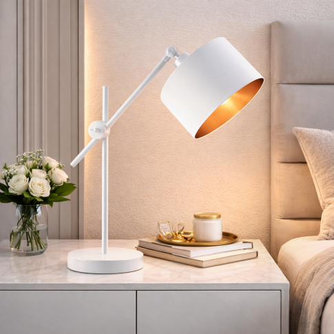 Regulowana lampka stołowa z ababiałym żurem to prawdziwy mistrz w sztuce dostosowywania się do Twoich potrzeb. Jej regulowane ramię pozwala na dowolne kształtowanie światła, aby perfekcyjnie dostosować je do naszych aktualnych potrzeb. Czy to podczas nocnego czytania ulubionej książki czy też przy pracy nad kreatywnym projektem – oprawa zawsze oświetli dokładnie to, co powinno być w centrum uwagi. Jej prosta, lecz funkcjonalna konstrukcja z regulowanymi wymiarami (wysokość - około 50 cm, szerokość - około 20 cm) skrywa w sobie nieskończone możliwości aranżacyjne, oferując nie tylko światło, ale i stylowy sposób na wyrażenie siebie. Dodatkowo oprócz 3 kolorów podstawy do wyboru jest także barwa kloszy spośród 5 wariantów - białego, szarego, zieleni butelkowej, granatowego i czarnego.