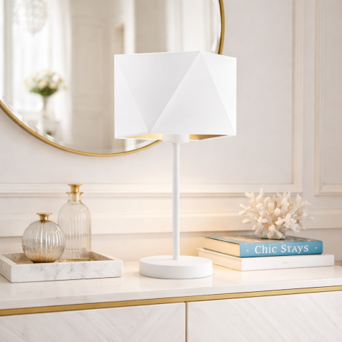 WUHU GOLD to doskonałe połączenie elegancji i funkcjonalności. Jej kompaktowe wymiary, 43 cm wysokości i 23 cm szerokości, sprawiają, że idealnie nadaje się do każdej sypialni, wprowadzając ciepły i przytulny nastrój. Ten model lampki nocnej oferuje aż 25 unikalnych kombinacji kolorystycznych, dzięki dostępności 5 kolorów kloszy i 5 kolorów konstrukcji. To pozwala na idealne dopasowanie oprawy do każdego wnętrza, niezależnie od stylu i osobistych preferencji. WUHU wyróżnia się abażurem w kształcie diamentu o wymiarach 16x16 cm i wysokości 16 cm. Złote wnętrze tkaninowego klosza dodaje lampie luksusowego charakteru, ale również wpływa na jakość światła, które emituje. Światło odbijające się od złotej ampli jest ciepłe i delikatne. Tworzy wyjątkowo przyjemną atmosferę, idealną do relaksu i wyciszenia. WUHU GOLD doskonale sprawdzi się w różnych stylach wnętrzarskich. WUHU GOLD jako lampa stołowa w stylu glamour podkreśli elegancję i luksus, dodając blasku i wyrafinowania. Natomiast w roli lampki nocnej w stylu industrialnym, jej metalowa konstrukcja i unikalny design wprowadzi nowoczesny, nieco surowy charakter, idealnie komponując się z surowymi materiałami i minimalistycznymi dodatkami.