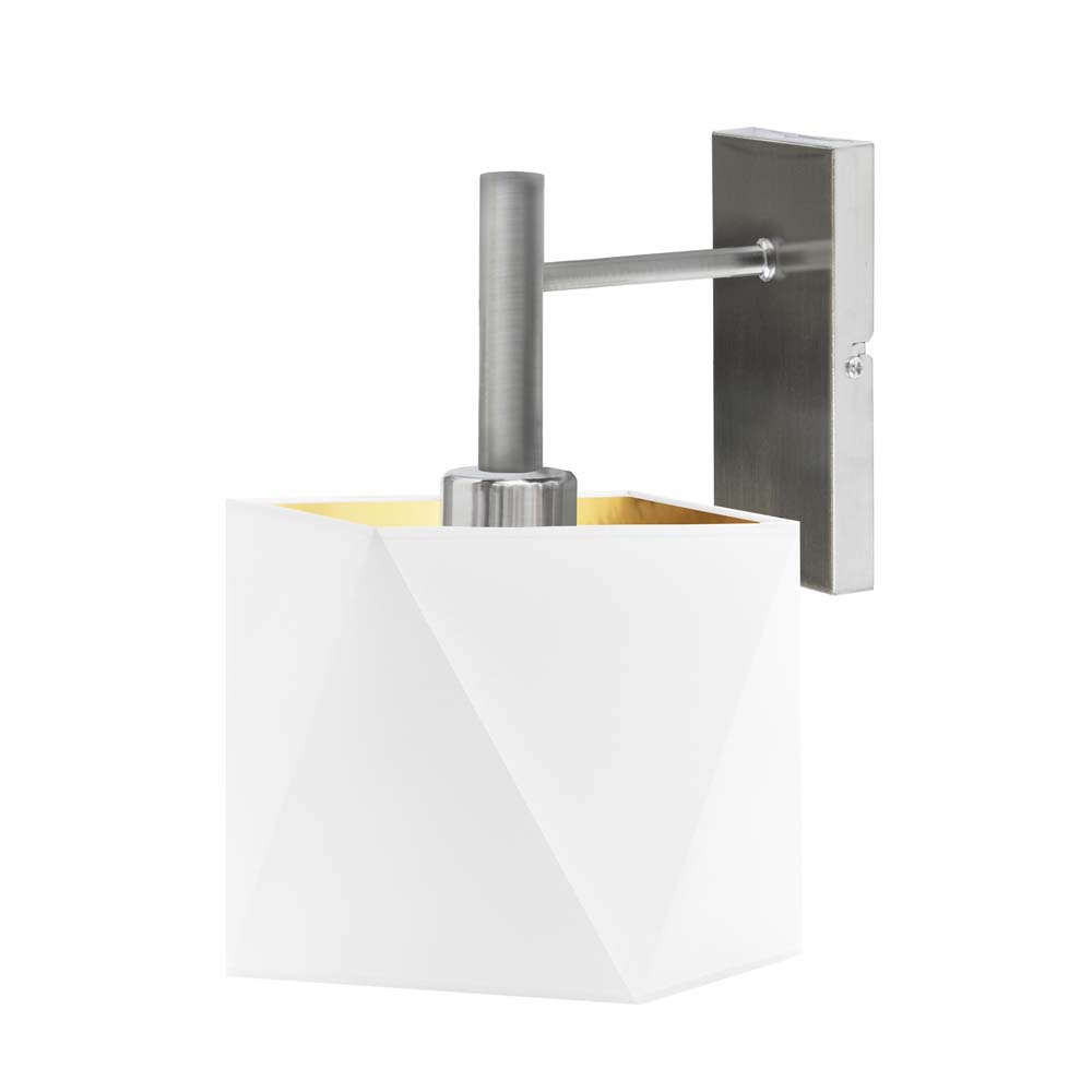 Lampa naścienna KIOTO GOLD to kwintesencja solidnego wykonania i eleganckiego designu, który zawdzięcza polskiej produkcji i wykorzystaniu materiałów najwyższej jakości. To elegancki kinkiet do sypialni składający się z dwóch części: stelaża z mocowaniem ściennym wykonanego z wysokojakościowej stali oraz klasycznego abażura z tkaniny. KIOTO GOLD prezentuje się niezwykle dekoracyjnie, szczególnie dzięki swojej kolorystyce. Podstawa lampy dostępna w kilku wariantach kolorystycznych pięknie kontrastuje z tkaninowym kloszem ze złoty wnętrzem. Abażur w kształcie geometrycznego diamentu o średnicy 16 cm i wysokości równej także 16 cm jest przystosowany do jednego źródła światła z dużym gwintem (E27). Ten wyrafinowany kinkiet doskonale komponuje się z nowoczesnymi aranżacjami oraz z bogato zdobionymi i eklektycznymi wnętrzami w stylu glamour. Kinkiet wewnętrzny to idealny wybór dla tych, którzy cenią sobie elegancję i styl w każdym detalu.