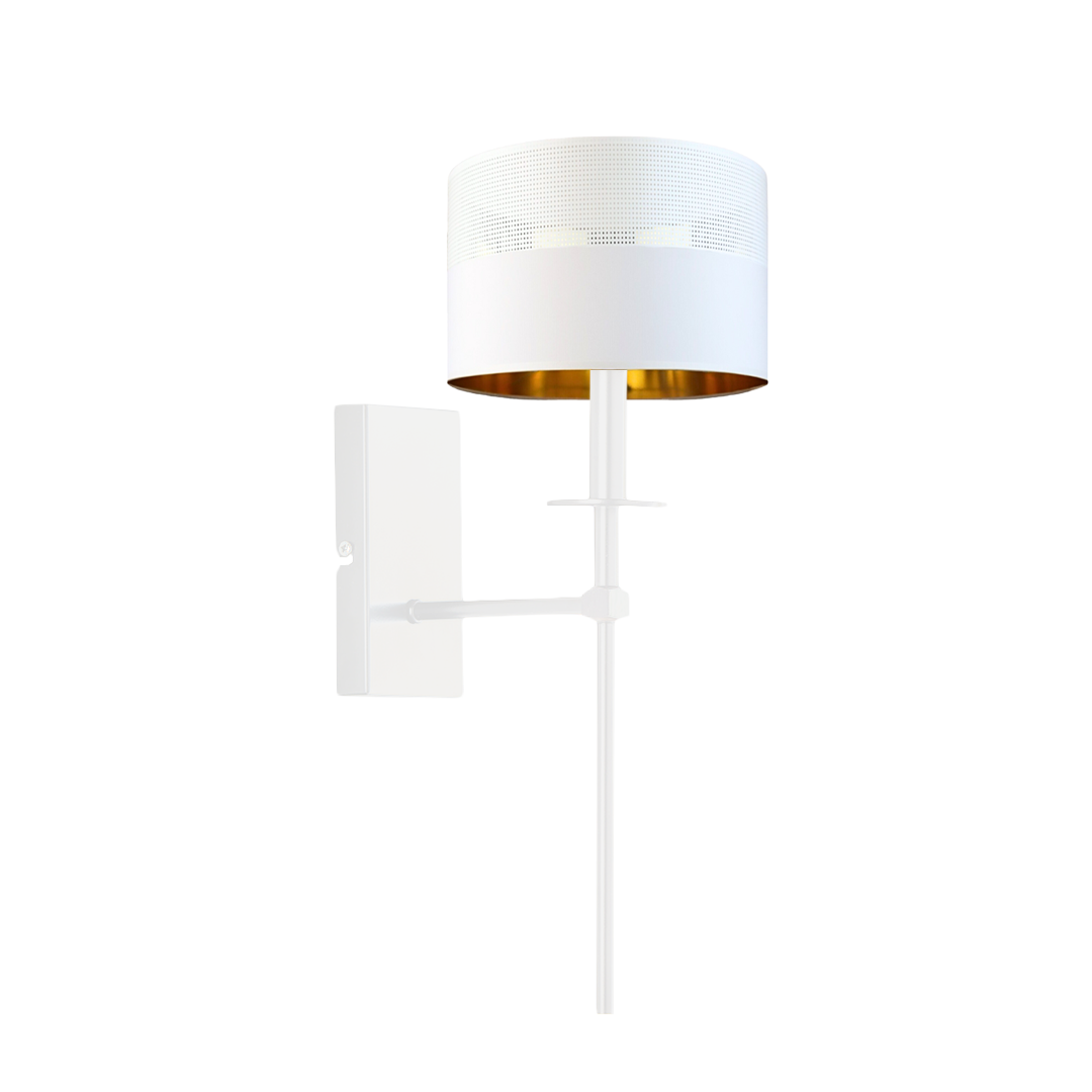 Biało-złoty kiniet w stylu glamour VADUZ GLAM został zaprojektowany z myślą o efektownym wyglądzie oraz praktycznym zastosowaniu. Jego całkowita wysokość wynosi około 50 cm natomiast szerokość to około 30 cm, co sprawia, że kinkiet nie tylko stanowi piękną ozdobę ściany, ale także doskonale oświetla przestrzeń. Abażur o średnicy 17,5 cm i wysokości 12 cm skutecznie rozprasza światło, nadając wnętrzu przytulnego i stylowego charakteru. Dwukolorowy klosza pięknie odbija światło, podkreślając ciepłą atmosferę pomieszczenia, podczas gdy ażurowa góra nadaje mu głębi i nowoczesnego wyglądu. Kinkiet długi pionowy został wykonany z solidnych materiałów, a jego metalowa konstrukcja dostępna jest w trzech wariantach kolorystycznych: czarnym, białym oraz srebrnym, co pozwala dopasować go do różnych aranżacji wnętrz.