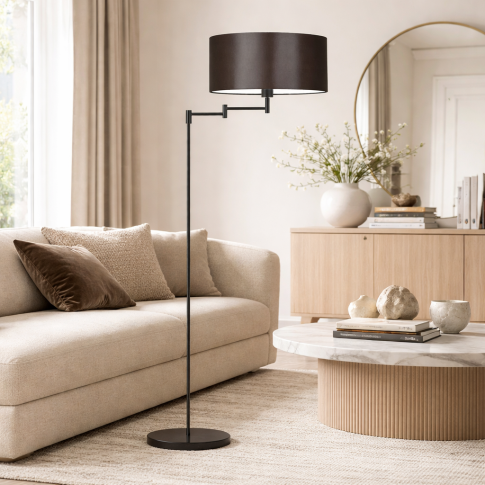 CANCUN to designerska lampa podłogowa, która zapewnia nie tylko wyjątkowy design, ale także komfort użytkowania. Wyposażona we włącznik nożny umożliwia wygodne sterowanie światłem bez konieczności schylania się, co jest szczególnie praktyczne w codziennym użytkowaniu. Lampa stojąca z brązowym abażurem ma imponującą wysokość 155 cm, dzięki czemu doskonale sprawdzi się jako lampa podłogowa do czytania regulowana – idealna do wieczornego relaksu z książką zarówno w salonie, jak i w sypialni. Abażur, wykonany z najwyższej jakości holenderskiej tkaniny podklejanej folią PVC, nie tylko prezentuje się elegancko, ale również skutecznie rozprasza światło, tworząc przytulną atmosferę w pomieszczeniu.