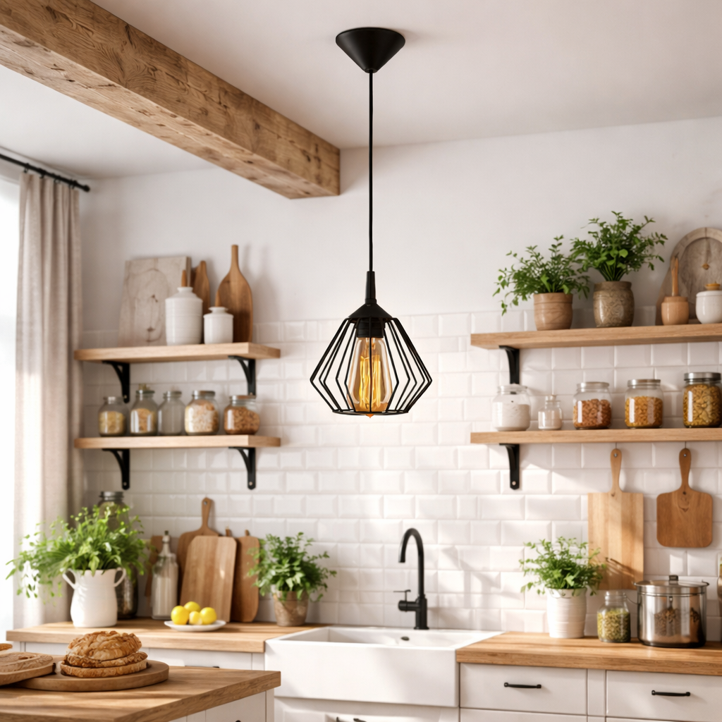 Lampa wisząca KENITRA LOFT to uniwersalny model oświetlenia, które sprawdzi się w praktycznie każdym pomieszczeniu. Lampa loft KENITRA posiada zawieszkę, która umożliwia jej zawieszenie na haku. Lekka lampa loftowa to świetne rozwiązanie do pomieszczeń z podwieszanym sufitem w którym oprócz głównego źródła światła chcemy zastosowac kilka instalacji świetlnych. Podsufitka lampy dostępna jest w 2 wariantach kolorystycznych: białym oraz czarnym. Kwintesencją całej oprawy jest druciany klosz, który nadaje lampie industrialnego charakteru. Metalowe klosze dostępne są w 2 kolorach: białym oraz czarnym.