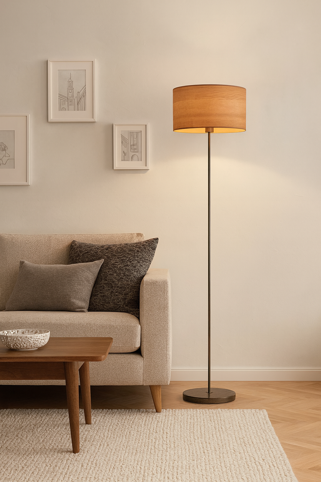 Nowoczesna lampa podłogowa z abażurem WERONA ECO to wszechstronny element oświetlenia, który świetnie sprawdzi się w różnych typach wnętrz – od domowych przestrzeni po miejsca użytkowe. Dzięki swojej subtelnej, minimalistycznej formie, lampa znakomicie uzupełni aranżację w salonie tworząc ciepły, nastrojowy klimat podczas wieczornego relaksu. Umieszczona obok sofy, fotela czy stolika kawowego stanowi idealne dodatkowe źródło światła, które jednocześnie dekoruje przestrzeń. WERONA ECO wpisując się w rolę lampy stojącej do sypialni stanie się praktycznym i stylowym dodatkiem, zapewniając przyjemne, rozproszone światło sprzyjające odprężeniu przed snem. Może pełnić funkcję lampy stojącej do czytania przy łóżku lub w okolicy toaletki, gdzie doda przytulności i intymnej atmosfery. Jej delikatny blask nie tylko wypełnia przestrzeń, ale także harmonijnie współgra z resztą wyposażenia podkreślając skandynawski lub rustykalny charakter wnętrza. Minimalistyczna lampa stojąca WERONA ECO to również doskonałe rozwiązanie dla biura. Jej elegancki, ale nienachalny wygląd sprawia, że świetnie odnajduje się w formalnych przestrzeniach. Lampa stojąca w biurze stworzy komfortowe warunki do pracy szczególnie w strefach, gdzie potrzebne jest dodatkowe oświetlenie, np. przy biurku lub w strefie relaksu. Jej nowoczesny design wpisuje się w trendy minimalistyczne, dodając profesjonalnego i stylowego akcentu do miejsca pracy. Jej wszechstronność i prostota czynią ją nieocenionym dodatkiem w każdej przestrzeni – zarówno w domowych zaciszach, jak i profesjonalnych wnętrzach komercyjnych.