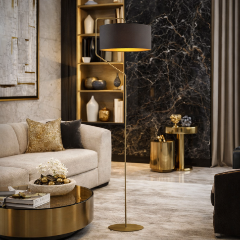 TESALLIA GOLD — czarna lampa podłogowa z abażurem ze złotym wnętrzem