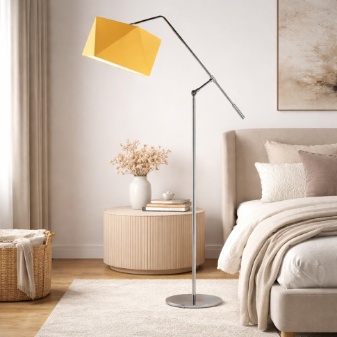 Nowoczesna lampa podłogowa z musztardowym abażurem COLMA to propozycja oświetlenia od producenta lamp z Częstochowy — LYSNE.PL. COLMA daje wyraźne światło i stanowi ciekawy element dekoracyjny w pomieszczeniu. Ze względu na minimalistyczną i prostą konstrukcję lampa stojąca na wysięgniku COLMA jest nowoczesnym dodatkiem do wnętrz, któremu wyraz nadaje designerski abażur — kształtem przypominający diament. Regulowane ramię lampy stojącej, okrągła, niewielka podstawa i oryginalny abażur to elementy, które połączone ze sobą tworzą harmonijny projekt z nutą współczesnego stylu.