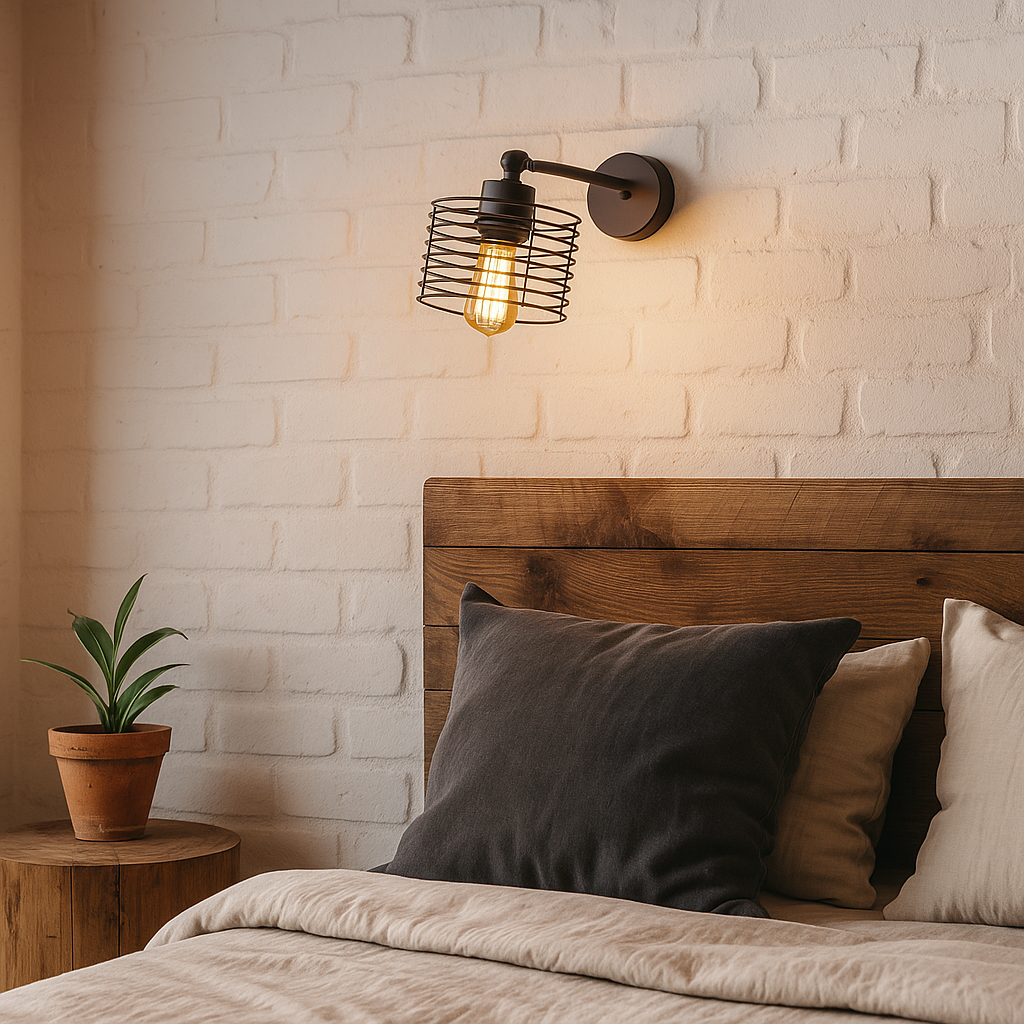 W poszukiwaniu idealnego oświetlenia do loftowej sypialni, naszej uwadze nie mogą ujść choćby nowoczesne kinkiety ścienne, które sprawdzą się w każdej aranżacji. Oświetlenie ścienne jest doskonałą alternatywą dla lampek nocnych. Emitowane przez nie światło może stworzyć niepowtarzalny nastrój i dodatkowo umilić wieczorny relaks w łóżku. Możemy wyróżnić kinkiety ścienne ze światłem skierowanym ku górze oraz lampki naścienne z punktem światła skierowanym w dół. Pierwsze będą idealnym rozwiązaniem do niskich pomieszczeń, ponieważ promień światła ustawiony ku górze optycznie powiększy wnętrze. Natomiast druciane klosze kinkietów ze światłem skierowanym ku dołowi, dzięki delikatnemu półmrokowi, stworzą romantyczny przytulny nastrój.