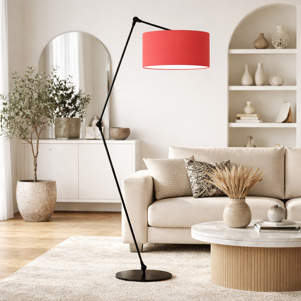 Lampa podłogowa na wysięgniku BARI jest dostosowana do elastycznej aranżacji przestrzeni dzięki możliwości regulacji wysokości do 177 cm oraz szerokości do 60 cm. Jej konstrukcja pozwala na swobodne ustawienie światła, co czyni ją doskonałym wyborem do miejsc, gdzie precyzyjne oświetlenie jest kluczowe. Abażur o wymiarach 20 cm wysokości i 40 cm szerokości zapewnia szerokie rozproszenie światła, co doskonale wpływa na atmosferę w pomieszczeniu. Dzięki praktycznemu ramieniu, lampy podłogowe z regulacją to niezwykle wszechstronne oświetlenie, które znajdzie swoje miejsce w różnych przestrzeniach. Doskonale sprawdzają się w salonie, gdzie można je wykorzystać jako dodatkowe źródło światła nad sofą lub fotelem, tworząc przytulny kącik do relaksu czy czytania. Lampy podłogowe z wysięgnikiem do salonu świetnie wpasują się w nowoczesne i minimalistyczne wnętrza, zapewniając nie tylko funkcjonalność ale i elegancki akcent dekoracyjny. Dzięki regulowanej konstrukcji, światło można skierować w dowolnym kierunku, co umożliwia elastyczne dostosowanie oświetlenia do potrzeb użytkownika. W sypialni lampa podłogowa LED do czytania to doskonałe rozwiązanie, które zapewnia precyzyjne oświetlenie bez konieczności instalowania dodatkowych lamp przy łóżku. Regulowane lampy z wysięgnikiem pozwalają na ustawienie światła w idealnym miejscu, umożliwiając komfortowe czytanie książek czy pracę przy komputerze. Te uniwersalne modele oświetlenia mogą także doskonale odnaleźć się w przestrzeniach użytkowych, takich jak biura, pracownie czy poczekalnie, gdzie elastyczność i funkcjonalność są kluczowe.