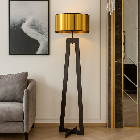 Złoty klosz odbija światło w sposób wyjątkowo delikatny, a jego połysk nadaje pomieszczeniu luksusowego, ale nieprzesadzonego charakteru. To idealny wybór do salonu, sypialni, gabinetu czy czytelni.
