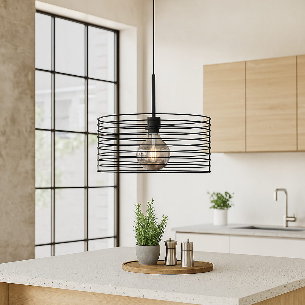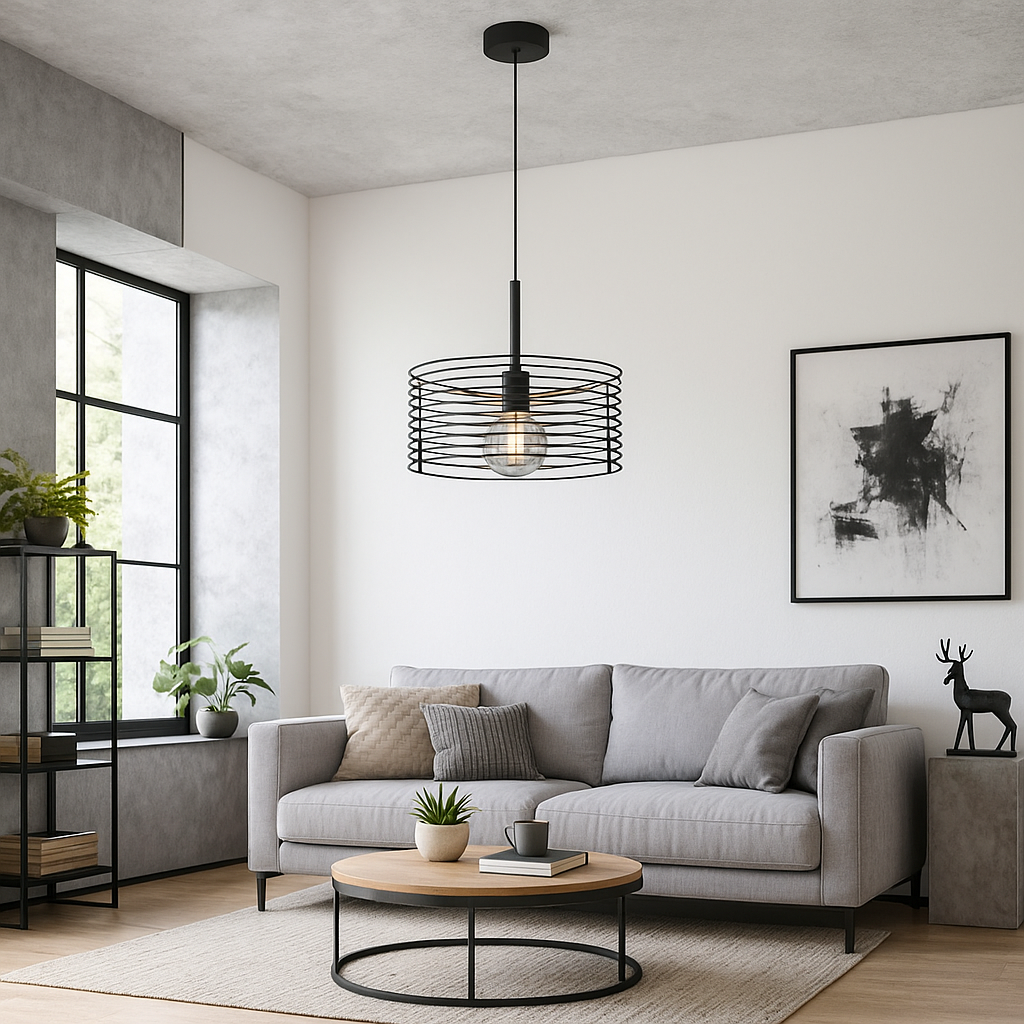 Mieszkanie urządzone w stylu loftowym to dziś zdecydowanie jedna z najbardziej pożądanych aranżacji. Wnętrza wykończone w tym właśnie stylu dają ogromną dowolność w wyborze dekoracji i dodatków. Bardzo ważne jest odpowiednie dopasowanie funkcjonalnego oświetlenia do loftu. Jedną z naszych najnowszych propozycji jest CLIZA LOFT - model, który świetnie sprawdzi się jako industrialne oświetlenie do salonu. Ta wyjątkowa lampa wisząca doskonale poradzi sobie choćby jako główne źródło światła w przestronnych, otwartych pomieszczeniach. Lampa wisząca CLIZA LOFT charakteryzuje się niewygórowanym designem. Druciany klosz wykonany został z metalu i dostępny jest w dwóch wariantach kolorystycznych: białym lub czarnym. Wspierany jest przez zawieszkę montowaną bezpośrednio do sufitu za pomocą wkrętów. Lampa wisząca loft CLIZA posiada również regulację przewodu zasilającego.