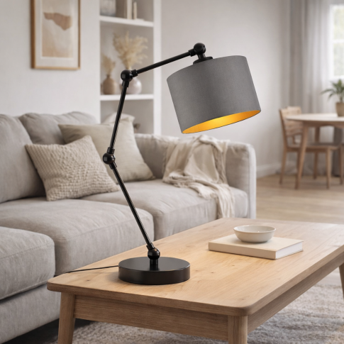 Czarna lampka biurkowa z szarym abażurem ze złotym wnętrzem ASMARA GOLD designerska lampka stołowa regulowana