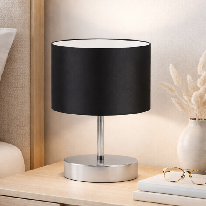 Lampka nocna AWINION to kwintesencja elegancji zawarta w kompaktowym rozmiarze, idealna dla tych, którzy cenią sobie wyrafinowanie i funkcjonalność. Cylindryczny abażur o wysokości 12 cm i szerokości 17,5 cm zapewnia optymalne rozproszenie światła, które delikatnie wypełnia pomieszczenie. Tkaninowy klosz rzuca miękki, ciepły blask, tworząc atmosferę spokoju i relaksu, idealną do nocnego czytania czy uspokajającego snu. Doskonale odnajdzie się w zaciszu pokojów dziecięcych, gdzie jej subtelne światło może stać się najlepszym kompanem nocnych przygód. Jednocześnie, dzięki swojej oszczędnej formie, AWINION świetnie wpisze się w przestrzenie, gdzie każdy centymetr ma znaczenie, nie tracąc przy tym na swoim uroku. Zaskakująco wszechstronna, ta mała lampka nocna z czarnym abażurem z łatwością dostosowuje się do różnorodnych aranżacji wnętrzarskich, od ciepłych, domowych zakątków, po eleganckie przestrzenie publiczne, jak hotele czy kawiarnie. Jej uniwersalny design i subtelne wykończenie sprawiają, że lampa stołowa do salonu stanie się nie tylko źródłem światła, ale również stylowym elementem dekoracyjnym, zdolnym podkreślić charakter każdego wnętrza. Bez względu na to, gdzie znajdzie swoje miejsce, AWINION wniesie ze sobą obietnicę ciepła i przytulności, czyniąc każde miejsce bardziej zapraszającym i osobistym.