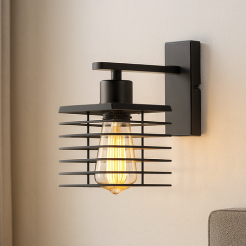 Lampy ścienne jako dodatkowe doświetlenie pomieszczeń to wyśmienite rozwiązanie do sporych loftowych aranżacji oraz wnętrz, które są dość trudne do oświetlenia, na przykład wąskie i długie korytarze bez naturalnego źródła światła, schody czy inne zakamarki. GALATI LOFT to klasyk wśród industrialnych kinkietów. Ten niewielki nowoczesny kinkiet czarny loft wyróżnia się na tle innych podobnych lamp dosyć niespecyficznym i niecodziennym abażurem. Klosz ze skierowanym źródłem światła w dół przypomina metalowy kosz stworzony z poziomych i pionowych drucików. W połączeniu na przykład z dekoracyjną żarówką Edisona, kinkiet do sypialni zachwyci nawet najbardziej wymagających fanów nowoczesnych i loftowych aranżacji.