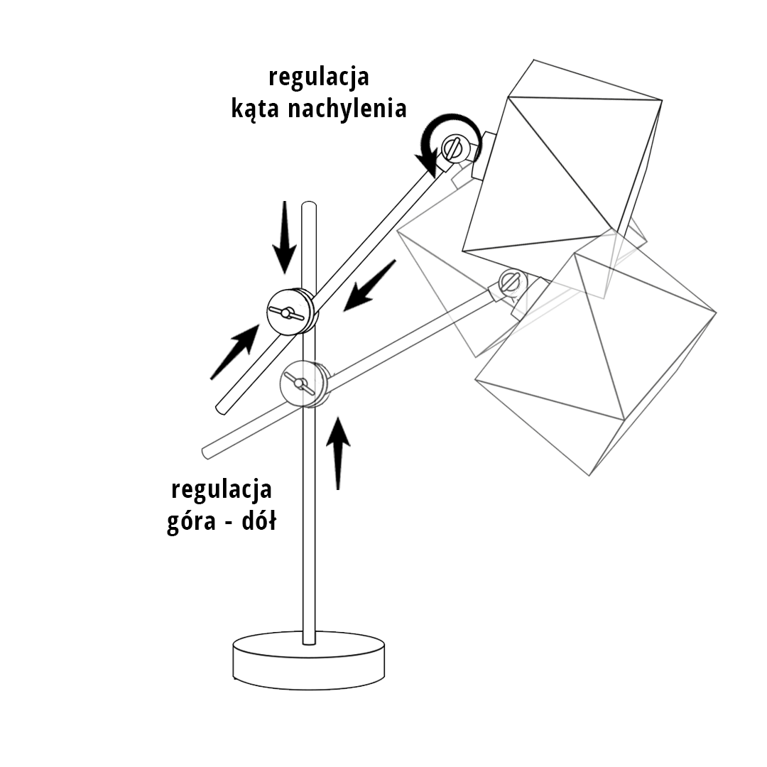 | Wymiary lampy (stelaż + abażur) | wysokość - około 50 cm, szerokość - około 20 cm (zarówno wysokość jak i szerokość lampy można dowolnie regulować) |