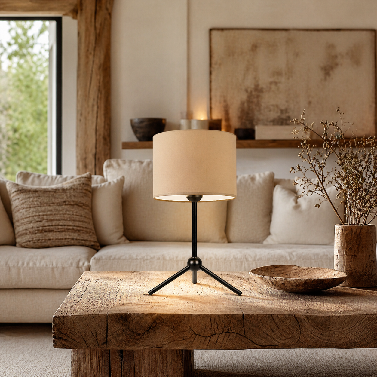 Lampa nocna z beżowym abażurem – komfort światła i elegancki design