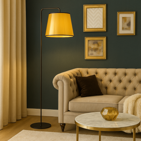 Industrialna lampa stojąca to prawdziwe arcydzieło nowoczesnego designu, które łączy w sobie surowy styl loftowy z elegancką estetyką. Ta imponująca czarna lampa podłogowa loft ma wysokość 156 cm, co sprawia, że przyciąga wzrok i stanowi wyrazisty punkt centralny w każdym pomieszczeniu. Jej szerokość 43 cm zapewnia doskonałą stabilność idealnie komponując się z różnorodnymi aranżacjami wnętrz. RIJAD MIRROR wyposażona jest w stożkowy abażur wykonany z wysokiej jakości PVC dostępny w dwóch luksusowych wersjach kolorystycznych: złotej i miedzianej. Złoty abażur, kiedy lampa jest włączona, pięknie rozprasza światło, tworząc ciepłą, przytulną atmosferę, która wypełnia całe pomieszczenie. Złoty klosz natomiast dodaje wnętrzu charakterystycznego, industrialnego uroku, wzmacniając jego surową elegancję. Aby w pełni podkreślić loftowy charakter tej wyjątkowej lampy stojącej szczególnie polecamy zastosowanie ozdobnych żarówek Edisona. Te dekoracyjne żarówki nie tylko dodają blasku, ale również podkreślają surowy, industrialny charakter oprawy, stając się integralnym elementem jej designu. Lampa stojąca loft to nie tylko funkcjonalne źródło światła, ale także wyrazisty element dekoracyjny, który wzbogaci każde wnętrze o unikalny klimat i niepowtarzalny styl. Jej solidna konstrukcja i elegancki design sprawiają, że idealnie nadaje się do salonu, sypialni, gabinetu, a także przestrzeni komercyjnych, takich jak biura czy kawiarnie. Oryginalna lampa stojąca LED to symbol nowoczesnej elegancji i przemysłowego szyku, który doda każdemu pomieszczeniu charakteru i wyrafinowania.