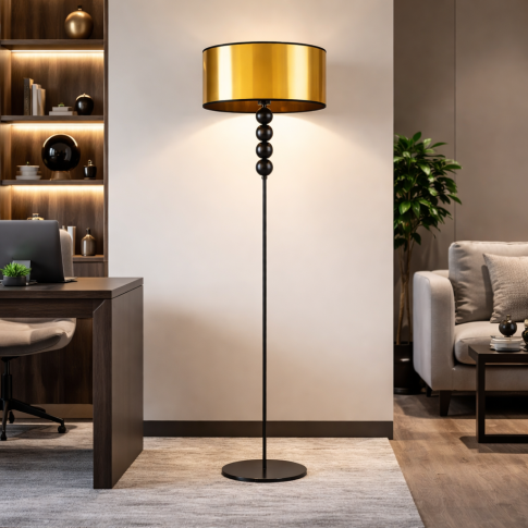 Czarna lampa podłogowa BERMUDY MIRROR to propozycja dla osób, które oczekują od oświetlenia czegoś więcej niż tylko funkcji użytkowej. Smukły, czarny stelaż w połączeniu z efektownym abażurem w kolorze złotym lub miedzianym tworzy wyrazistą, a zarazem elegancką kompozycję. To czarna lampa podłogowa z abażurem zaprojektowana z myślą o wnętrzach nowoczesnych, gdzie liczy się detal, proporcja i ponadczasowa estetyka. Kolekcja MIRROR doskonale łączy minimalizm z nutą luksusu.