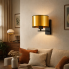 Pozwól swojemu wnętrzu lśnić subtelnym lecz wyrafinowanym blaskiem dekoracyjnego kinkietu ELVORA MIRROR. Ta niezwykła oprawa łączy klasyczną czerń ze złocistą, lustrzaną powierzchnią abażuru, tworząc aranżację pełną szyku i elegancji. Gdy światło sączy się z wnętrza abażuru, miękko odbija się w jego złotym wykończeniu, tworząc ciepłą, przytulną atmosferę, która sprzyja relaksowi i odprężeniu. Ta oryginalna lampa ścienna w kolorze złotym świetnie prezentuje się pojedynczo lub jako instalacja świetlna podkreślając wyjątkowy charakter każdego wnętrza. Sprawdzi się nie tylko jako produkt użytkowy, ale również jako oryginalny element dekoracyjny. Dobrze wkomponowane we wnętrza i optymalnie rozmieszczone tego typu lampy ścienne pozwolą rozjaśnić mroczny kąt i wyeksponować designerskie ozdoby.