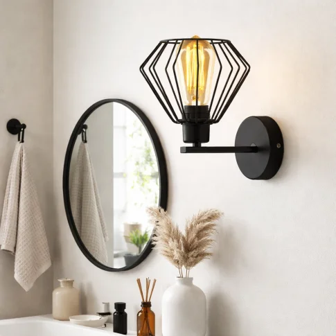 Czarny kinkiet loftowy DUBLIN LOFT został w pełni wyprodukowany w naszym rodzimym kraju. Producent oświetlenia LYSNE.PL zadbał o każdy, nawet najmniejszy detal. Druciany klosz wysoki na 13 cm oraz szeroki na 16,5 cm został połączony z metalowym stelażem tworząc kinkiet o wysokości 23 cm i szerokości 22,5 cm. W zależności od preferencji, industrialny kinkiet ścienny DUBLIN LOFT dostępny jest w wielu konfiguracjach kolorystycznych. Istnieje możliwość modyfikacji kolorystycznej zarówno klosza (biały, czarny), jak i stelaża (biały, czarny). Poszczególne zestawienia będą świetnym rozwiązaniem dla nowoczesnych i niestandardowych wnętrz. Ten model metalowego kinkietu ściennego LED dostosowany jest do źródeł światła o klasach energetycznych od A do G. Posiada miejsce na 1 źródło światła o mocy tradycyjnej żarówki 60W lub żarówki ledowej montowanej na tzw. duży gwint E27. Przy zastosowaniu ozdobnej żarówki Edisona (brak w zestawie) kinkiet stanie się nie tylko dodatkowym źródłem światła ale także eleganckim elementem ozdobnym każdego salonu, sypialni czy pokoju młodzieżowego. Industrialny kinkiet ścienny idealnie sprawdzi się także w roli kinkietu hotelowego zapewniając gościom relaks po dniu pełnym wrażeń.