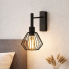 Minimalistyczny prostokątny stelaż w białym lub czarnym kolorze doskonale współgra z drucianym kloszem dostępnym w 2 wariantach kolorystycznych: białym oraz czarnym. Model wyposażony jest w klosz w kształcie diamentu o standardowym dla kinkietów rozmiarze, czyli 13 cm wysokości oraz 16,5 cm szerokości. Cała lampa natomiast jest wysoka na 27,5 cm oraz szeroka na 23 cm. Dzięki temu, że klosz wraz z żarówką skierowany jest w dół, oprawa może pełnić funkcję kinkietu do czytania. Rozproszone światło nie będzie razić w oczy po wstaniu z łóżka, ale za to czytając z pozycji leżącej, światło znad głowy świetnie oświetli strony czytanej książki.