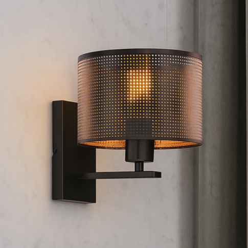 Nowoczesny kinkiet ELVORA AŻUR zachwyca swoim stylem i designem. Ciemna kolorystyka lampy doskonale wpisuje się w najnowsze trendy wnętrzarskie. Dlatego lampa ścienna ELVORA AŻUR będzie idealnym oświetleniem dla wnętrz zaaranżowanych w stylach loft i industrialnym. Kinkiet ma owalny, ażurowy abażur, przez który delikatnie przebija światło. Klosz o średnicy 17,5 cm i wysokości 12 cm dostępny jest w dwóch wersjach: czarnej i czarnej ze złotym wnętrzem. Uzupełnieniem loftowego kinkietu jest minimalistyczna konstrukcja, mocowana bezpośrednio do ściany. Do wyboru mamy aż 5 różnych kolorów stelaża: klasyczną biel, srebrny, szlachetny chrom, stal szczotkowaną oraz stare złoto. Kompaktowe wymiary kinkietu (20 cm wysokość, 22 cm szerokość) czynią go uniwersalnym oświetleniem. Nawet w małych kawalerkach będzie idealnie oświetlał pokój dzienny czy przedpokój. Designerski klosz rozprasza promienie światła, dzięki czemu są one łagodne i nie rażą w oczy. Funkcjonalność i styl lampki ściennej sprawiają, że pasuje nie tylko do salonu, ale także do przedpokoju, pokoju młodzieżowego czy łazienki.
