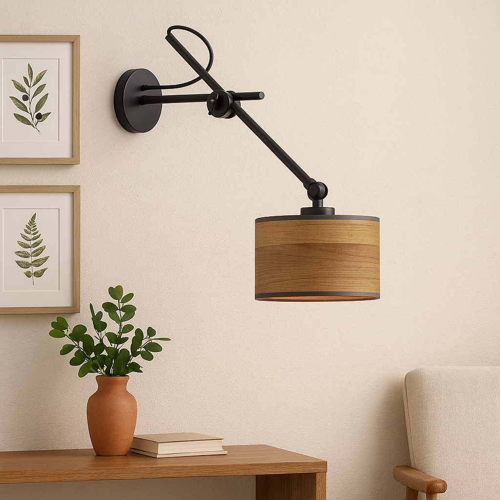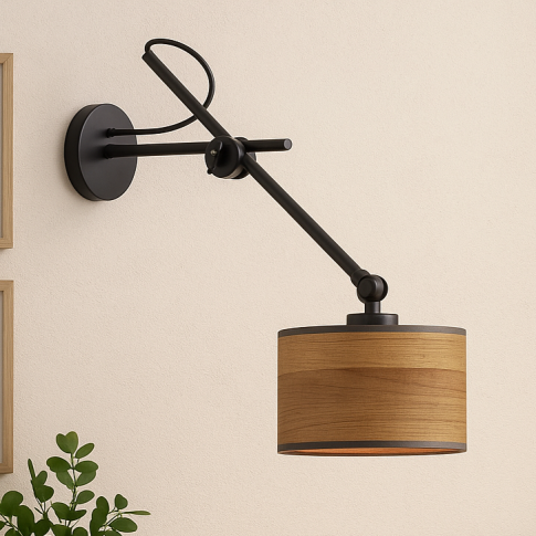 To, co wyróżnia kinkiet na regulowanym ramieniu HAMILTO ECO to nie tylko jej funkcjonalność, ale także możliwość personalizacji. Wybór koloru abażura jak i konstrucji z bogatej palety oferuje wiele możliwości aranżacyjnych. Kolekcja ECO to wyjątkowa propozycja dla miłośników wnętrzarskich trendów eko i skandynawskiego minimalizmu. Abażury z tej serii są wykonane z innowacyjnego tworzywa PVC, które idealnie imituje naturalną strukturę drewna – fornir, co dodaje lampom autentyczności i ciepłego charakteru. Fornirowe klosze nie tylko pięknie się prezentują, ale są też trwałe i łatwe w utrzymaniu, co stanowi dodatkowy atut dla współczesnych przestrzeni. Średnica klosza wynosi 17,5 cm, a jego wysokość to 12 cm. Subtelne, naturalistyczne wzornictwo lamp z kolekcji ECO wprowadzi do wnętrz spokój i harmonię, będąc jednocześnie na wskroś funkcjonalnym elementem dekoracyjnym. Dzięki swojej prostocie i elegancji, kinkiety ścienne na wysięgniku doskonale komponują się z różnorodnymi aranżacjami, od minimalistycznych po bardziej tradycyjne, tworząc przytulną atmosferę i dodając wnętrzom skandynawskiego lub rustykalnego uroku. To idealne rozwiązanie dla tych, którzy szukają oświetlenia, które jest zarówno piękne, jak i funkcjonalne.