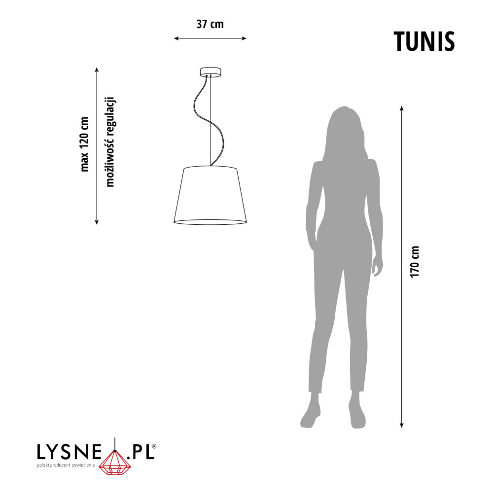 Designerska lampa wisząca TUNIS to elegancka odpowiedź na potrzeby miłośników prostoty, funkcjonalności i estetyki. Jej stożkowy abażur zawieszony jest na solidnej, regulowanej konstrukcji o maksymalnej długości 120 cm. Dzięki temu abażurowa lampa wisząca doskonale sprawdzi się zarówno w wysokich jak i niższych pomieszczeniach. To propozycja idealna do wnętrz urządzonych według zasady „mniej znaczy więcej”. Lampa wisząca z tkaninowym abażurem TUNIS wpasuje się zarówno w aranżacje skandynawskie, klasyczne, minimalistyczne jak i nowoczesne – stając się subtelnym, a zarazem wyrazistym akcentem przestrzeni.