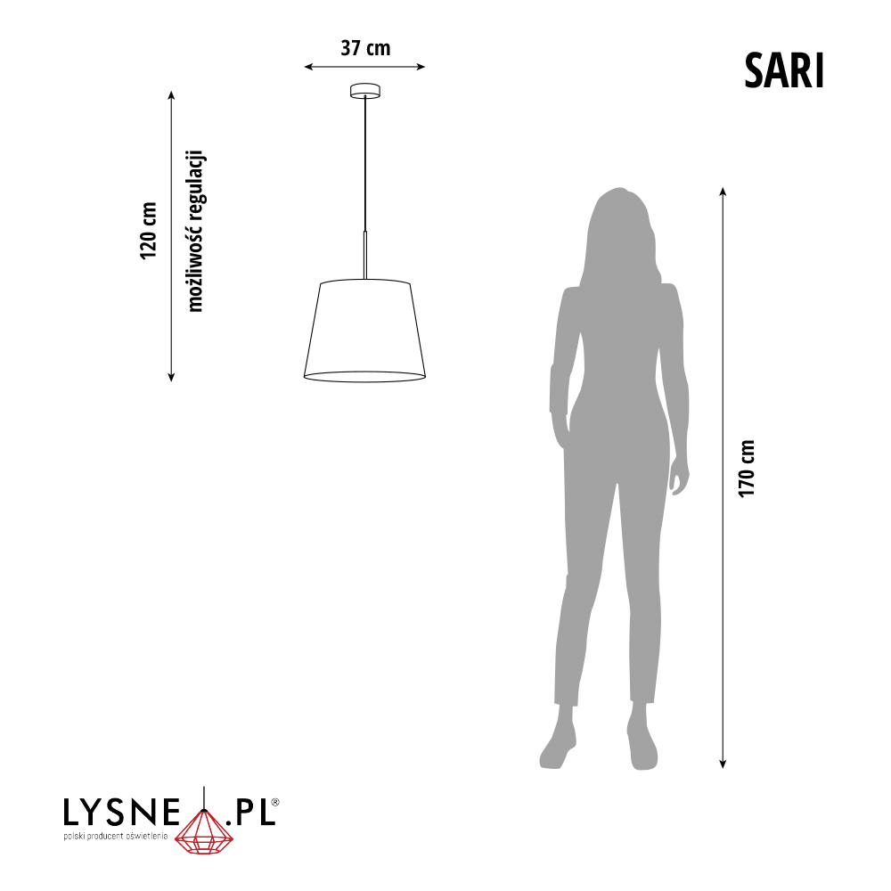 Geometryczna lampa wisząca SARI to połączenie prostoty, klasy i wyjątkowego stylu. Dzięki temu jest to jeden z bestsellerowych modeli oświetlenia, który pasuje do pomieszczeń o różnym charakterze i przeznaczeniu. Wyjątkowy design w połączeniu z szeroką gamą kolorystyczną abażurów sprawia, że lampa wisząca SARI idealnie komponuje się z wnętrzami urządzonymi w stylu nowoczesnym, skandynawskim czy industrialnym. Dodatkowo, sam możesz wybrać kolor podsufitki z 5 proponowanych wariantów. Abażur występuje w geometrycznej formie stożka i doskonale rozświetla wnętrze przyjemnym, ciepłym blaskiem. Ponadto, istnieje możliwość regulacji długości przewodu zasilającego lampy wiszącej. Maksymalna długość przewodu to aż do 120 cm, najkrótsza to ok. 25-35cm. Jako producent oświetlenia wiemy jak ważne jest dobrze dobrane światło w pomieszczeniu, dlatego dajemy Wam możliwość wyboru liczby źródeł światła (1-3xE27), a także dolnej zabudowy lampy w postaci denka. Opcja z denkiem pozwala lepiej rozproszyć światło na całą powierzchnię abażura, tak by we wnętrzu było jaśniej, a także zamaskować wnętrze oprawy, by wyglądała estetyczniej i bardziej stylowo.