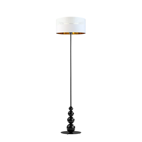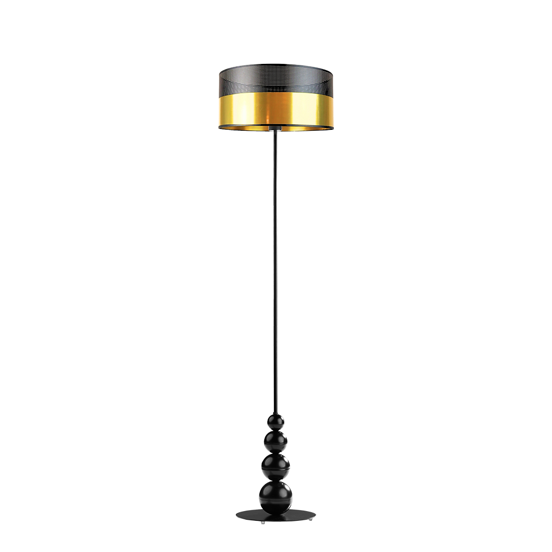 Nowoczesna lampa podłogowa ROMA GLAM to połączenie klasycznej formy z nowoczesną elegancją, które odmienia każde wnętrze. Smukły, metalowy stelaż, dostępny w kolorze białym, srebrnym lub czarnym został wzbogacony o 4 dekoracyjne kule o różnej średnicy, harmonijnie rozmieszczone przy podstawie lampy – od największej do najmniejszej. Całość wieńczy abażur w kształcie walca o szerokości 40 cm i wysokości 20 cm. Dla miłośników luksusowych detali przygotowano wyjątkowe warianty abażurów: czarny z czarnym ażurem, czarny ze złotym wnętrzem z czarnym ażurem, biały ze złotym wnętrzem z ażurem, miedziany, srebrny oraz złoty – wszystkie wykończone subtelnym, dekoracyjnym ażurem. Wysokość eleganckiej lampy stojącej do salonu wynosi 166 cm, co pozwala wprowadzić efektowny element aranżacyjny do przestronnych i mniejszych wnętrz.