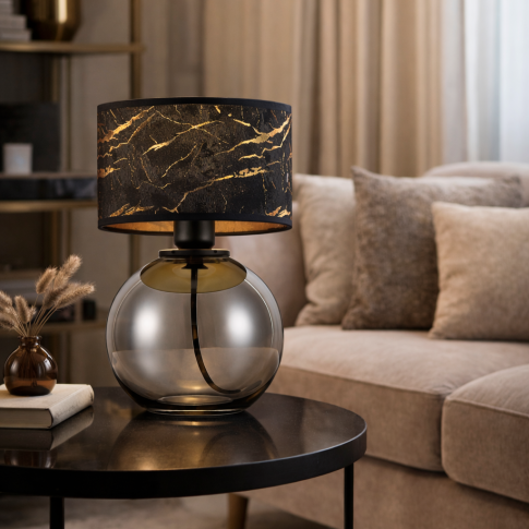 Połączenie szkła i motywu marmuru to trend, który od lat króluje we wnętrzach. Dlatego lampa stołowa marmurkowa świetnie podkreśli charakter sypialni, salonu lub stylowego gabinetu. Model dostępny jest w wariantach z abażurem w kolorze białym marmurkowym oraz czarnym marmurkowym, dzięki czemu łatwo dopasować lampę do jasnych i ciemniejszych aranżacji.