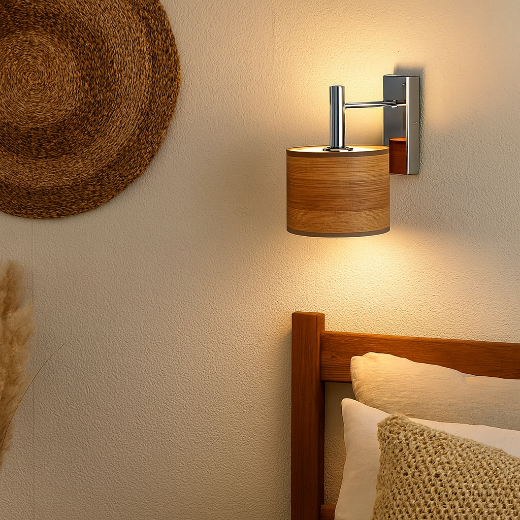Kinkiet ścienny z abażurem AKRA ECO to propozycja dla osób, które poszukują funkcjonalnego i stylowego oświetlenia dodatkowego. Smukły stelaż i cylindryczny abażur skierowany ku dolnej powierzchni zachwycają prostotą oraz elegancją. Światło wydobywa się w górę i w dół równomiernie rozświetlając przestrzeń, a przy tym subtelnie podkreślając strukturę fornirowego abażura. To sprawia, że nowoczesny kinkiet ścienny do sypialni tworzy przytulny nastrój sprzyjający relaksowi, a w salonie pełni funkcję zarówno praktycznego jak i dekoracyjnego oświetlenia. Dekoracyjny kinkiet ścienny z abażurem AKRA ECO świetnie sprawdzi się w aranżacjach skandynawskich, klasycznych i nowoczesnych dodając im szyku i elegancji.