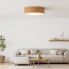 DUBAJ ECO z abażurem o średnicy 60 cm to lampa, która zachwyca równowagą między estetyką a praktycznością. Dostępna jest w kilku modnych kolorach – orzechowy, dąb sonoma i kasztanowy – dzięki czemu dopasowuje się do każdego wnętrza. Jej światło rozchodzi się ku dołowi, tworząc miękką, równomierną poświatę, idealną jako oświetlenie w stylu skandynawskim. Taka forma sprawia, że plafon doskonale oświetla pomieszczenia o różnym przeznaczeniu – od salonu i sypialni, po biuro, jadalnię czy przedpokój. Stonowana kolorystyka abażura wprowadza do przestrzeni harmonię i spokój, a subtelne światło podkreśla naturalne barwy drewna i tkanin. To lampa sufitowa LED, która doskonale współgra z innymi elementami wyposażenia – oświetleniem w stylu skandynawskim tworząc spójne i stylowe oświetlenie wewnętrzne.