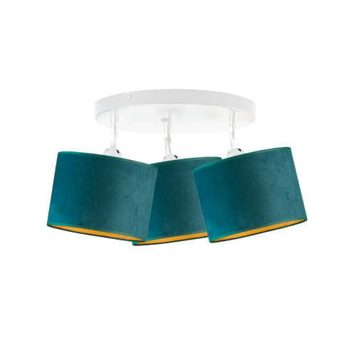 Plafon na 3 żarówki DAKOTA VELUR to wyjątkowy model, który łączy w sobie elegancję i praktyczność, idealnie wpisując się w nowoczesne oraz funkcjonalne aranżacje wnętrz. Charakterystyczną cechą tej lampy jest jej unikalna forma i kolorystyka, które przyciągają wzrok i nadają wnętrzu wyjątkowego stylu. Rozłożysta lampa sufitowa wyposażona jest w okrągłą podsufitkę w kształcie talerza, która stanowi solidną bazę dla trzech źródeł światła. Każde z nich otoczone jest dekoracyjnym abażurem z weluru, który nie tylko estetycznie uzupełnia całość, ale także subtelnie rozprasza światło, tworząc przyjemną atmosferę w pomieszczeniu. Wykonanie plafoniery z wysokiej jakości materiałów zapewnia nie tylko piękny wygląd, ale także trwałość i łatwość w utrzymaniu czystości. Potrójna lampa sufitowa ma całkowitą wysokość 30 cm, szerokość 40 cm oraz średnicę podsufitki wynoszącą 30 cm. Dodatkowo, każdy klosz umieszczony jest na przegubie, co umożliwia skierowanie światła dokładnie tam, gdzie aktualnie tego potrzebujemy.