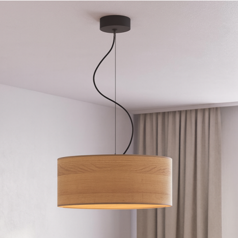 Minimalistyczna lampa wisząca HAJFA ECO w kolorze dębu sonoma to część wyjątkowej kolekcji oświetlenia ECO marki LYSNE.PL, które wyróżniają się nie tylko designem ale też możliwościami personalizacji. Do wyboru dostępne są trzy kolory à la forniru (dąb sonoma, kasztanowy, orzechowy) oraz pięć wariantów kolorystycznych stelaża, co pozwala stworzyć idealne dopasowanie do wystroju wnętrza. Dodatkowo można wyposażyć lampę w mlecznobiałą, dolną zabudowę klosza w postaci pleksi, która rozprasza światło na całą powierzchnię owalnego abażura i nadaje mu subtelnej elegancji. Model HAJFA ECO doskonale komponuje się z innymi produktami z tej serii – takimi jak plafon WENECJA ECO, lampa podłogowa WERONA ECO, kinkiet MODENA ECO czy lampa nocna NICEA ECO tworząc spójną i stylową koncepcję oświetlenia domu. HAJFA ECO fi - 40 cm to nowoczesna lampa wisząca do salonu i sypialni, która łączy design z funkcjonalnością i polskim rzemiosłem.