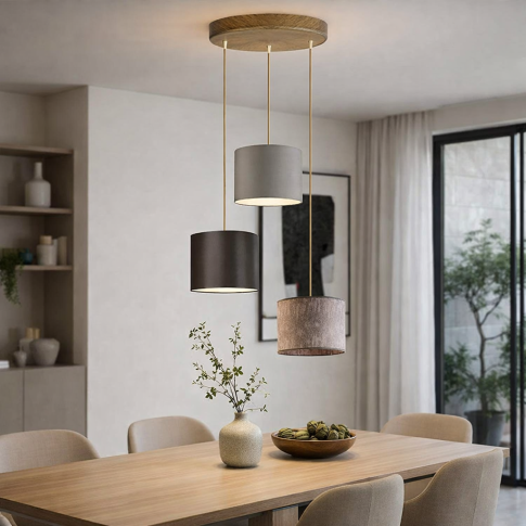 Żyrandol z regulacją wysokości PUEBLO – 3-punktowa lampa wisząca z abażurami do salonu i jadalni