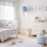 Drewniana lampa podłogowa dla dzieci CURACAO z niebieskim abażurem