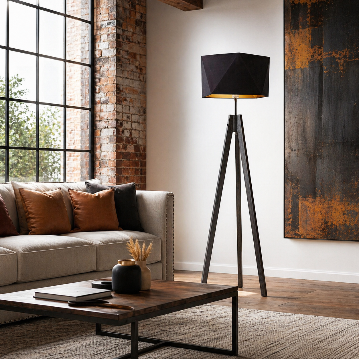 Jednym z największych atutów modelu LAGOS GOLD jest możliwość personalizacji. Lampa podłogowa drewniana na trójnogu dostępna jest w wielu wariantach kolorystycznych abażura oraz pięciu wersjach stelaża: białym, popielatym, dębowym, mahoniowym i hebanowym. Stylowy abażur wykonany został z certyfikowanej, niepalnej tkaniny tekstylnej, co wpływa na bezpieczeństwo użytkowania. Drewniana konstrukcja podkreśla naturalny charakter lampy i doskonale wpisuje się w stylistykę skandynawską oraz japandi. W bardziej odważnych aranżacjach, np. loftowych, lampa stojąca z drewnianą podstawą może stanowić kontrastowy element dekoracyjny, który przyciąga uwagę i podkreśla indywidualny charakter wnętrza. To sprawia, że drewniana lampka podłogowa z abażurem jest rozwiązaniem niezwykle uniwersalnym i ponadczasowym.