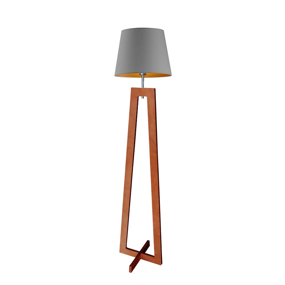 Lampa podłogowa z drewnianą podstawą KOS GOLD hipnotyzuje swoim nowoczesnym designem. Niezaprzeczalnym atutem oprawy jest możliwość dowolnej konfiguracji kolorystycznej. Modną lampę stojącą wybieramy spośród kilku kolorów abażura i 5 drewnianych stelaży (biały, popielaty, dąb, mahoń oraz heban). Stylowy, tkaninowy klosz wyprodukowany został z holenderskiej tkaniny tekstylnej z certyfikatem niepalności, a konstrukcja z drewna sosnowego silnie nawiązuje do natury. Stożkowy abażur, który wieńczy lampę, sprawia, że oświetlenie to cechuje się niezwykle oryginalnym charakterem. Złote wnętrze abażuru odznacza się różnym rodzajem faktury. Biały abażur ze złotym wnętrzem wyposażony jest w błyszczącą fakturę, natomiast pozostała kolorystyka cechuje się matową fakturą. Kształtny, drewniany stelaż, sprawia, że oświetlenie jest stabilne oraz prezentuje się nienagannie. Lampa podłogowa ze stożkowym abażurem rewelacyjnie ozdobi przestrzeń pokoju, salonu czy też korytarza. Wykorzystana w nieco odważniejszych aranżacjach z elementami stylu glamour czy loft prezentować będzie się zjawiskowo. Bez wątpienia lampa podłogowa z drewnianymi nogami to oświetlenie o wielu twarzach.